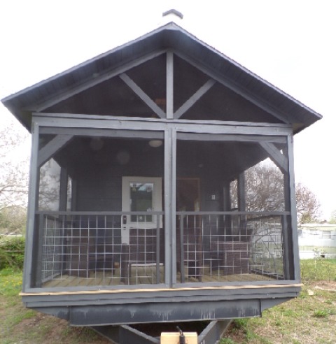 A hotel-style space with the warmth of a cabin—featuring a screened-in porch, bedroom, full bath, efficient kitchenette, and a cozy living area. Perfect as a guest retreat or short-term rental, it’s everything you need in under 400 sq. ft!